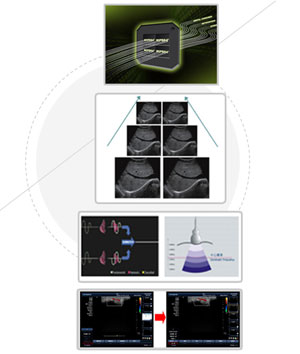 LanSRI斑点噪声抑制技术:根据不同组织的特性选择不同的噪声抑制和结构增强的处理,抑制斑点噪声对图像的干扰,改善了图像显示效果